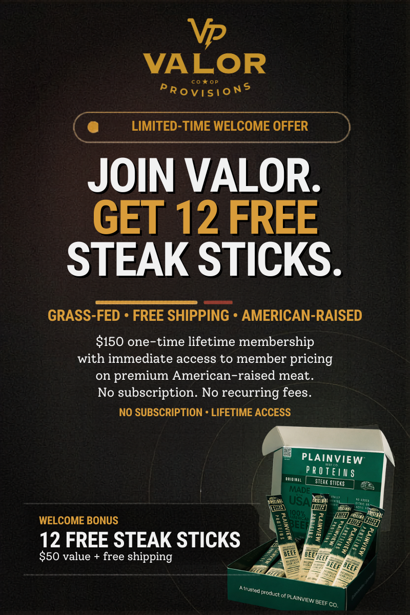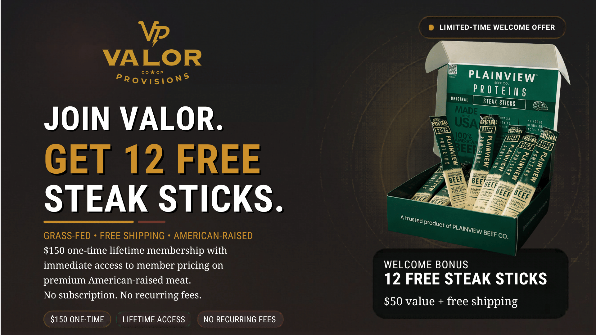 New members who join through the current promotional offer receive 12 Plainview Grass Fed Steak Sticks free plus free shipping while the offer is live. Join through the active membership offer shown on the site to claim the promotion.